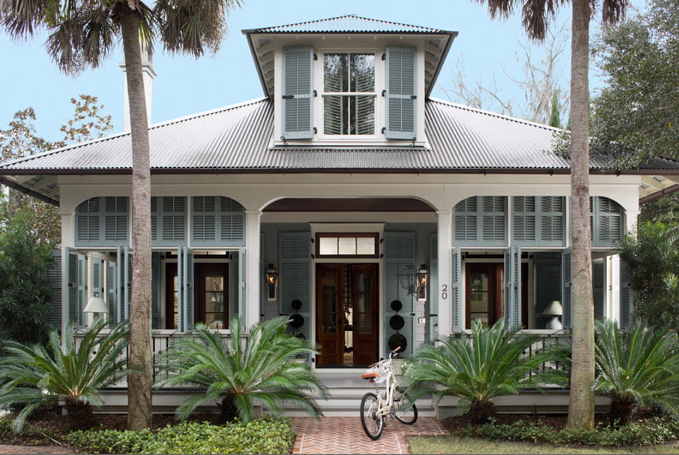 This southern home’s exterior in Buxton Blue HC-149 contrasts beautifully with crisp white Frostine AF-5 on trim, creating a breezy combination of elegance and hospitality. Consider Aura® Exterior paint, which provides outstanding fade resistance and durability against even the harshest weather conditions.
